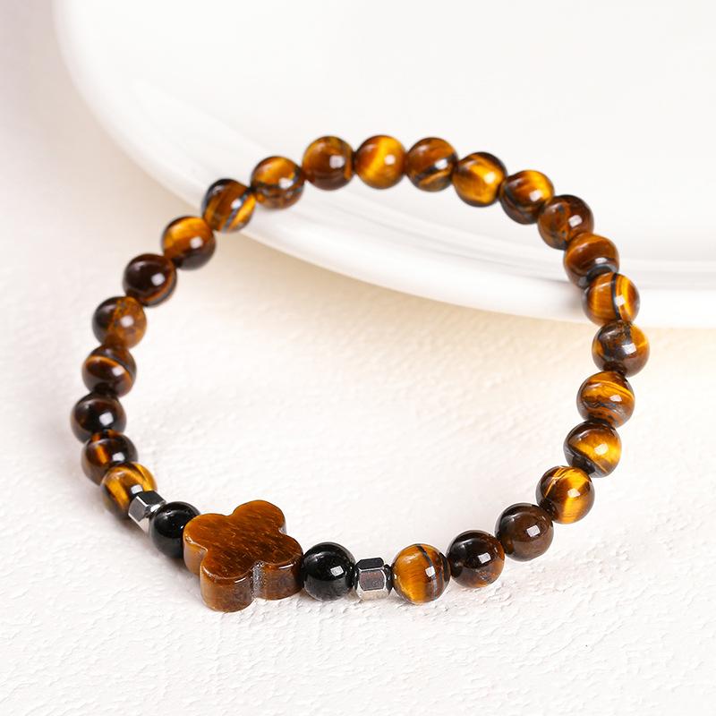 ブレスレット レディース メンズ 石 イエロータイガーアイ 四つ葉 クローバー 金運 仕事運 開運 6mm