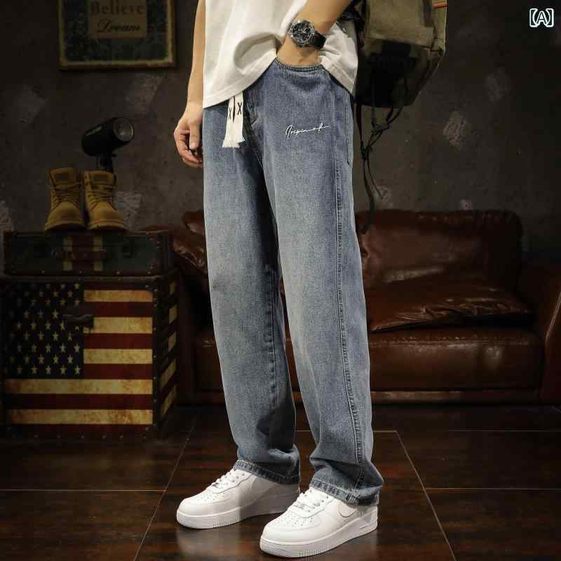 メンズ 男性用 ファッション オシャレ シンプル 大人 かっこいい ストリート ヒップホップ HipHop ジーンズ 春 アメリカンン スタイル ワイド レッグ ルーズ ストレート ウォッシュ ブルー ドレープ パンツ
