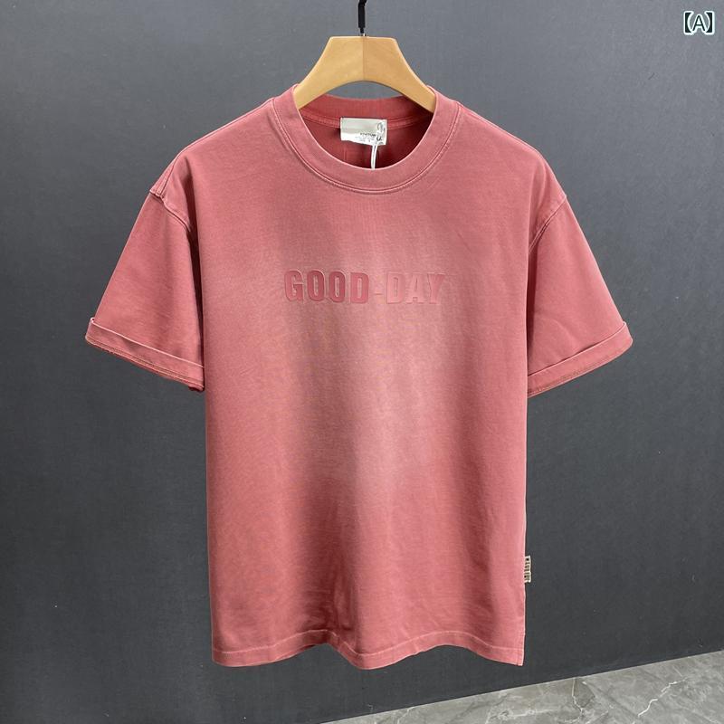 トップス メンズ 男性用 Tシャツ アメリカンカジュアル レトロ ヘビーウェイト 綿 コットン クルーネック 丸首 ゆったり ビッグシルエット 半袖 春夏 ウォッシュ加工 ストリート 普段使い カジュアル 快適 吸湿速乾