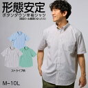シャツ カジュアルシャツ 半袖 大きいサイズ 形態安定 ボタンダウン 半袖シャツ ストライプ柄 肩まわり お腹ゆったり セルフフィット 消臭テープ付 メンズ ブルー/グリーン 3L-10L ニッセン