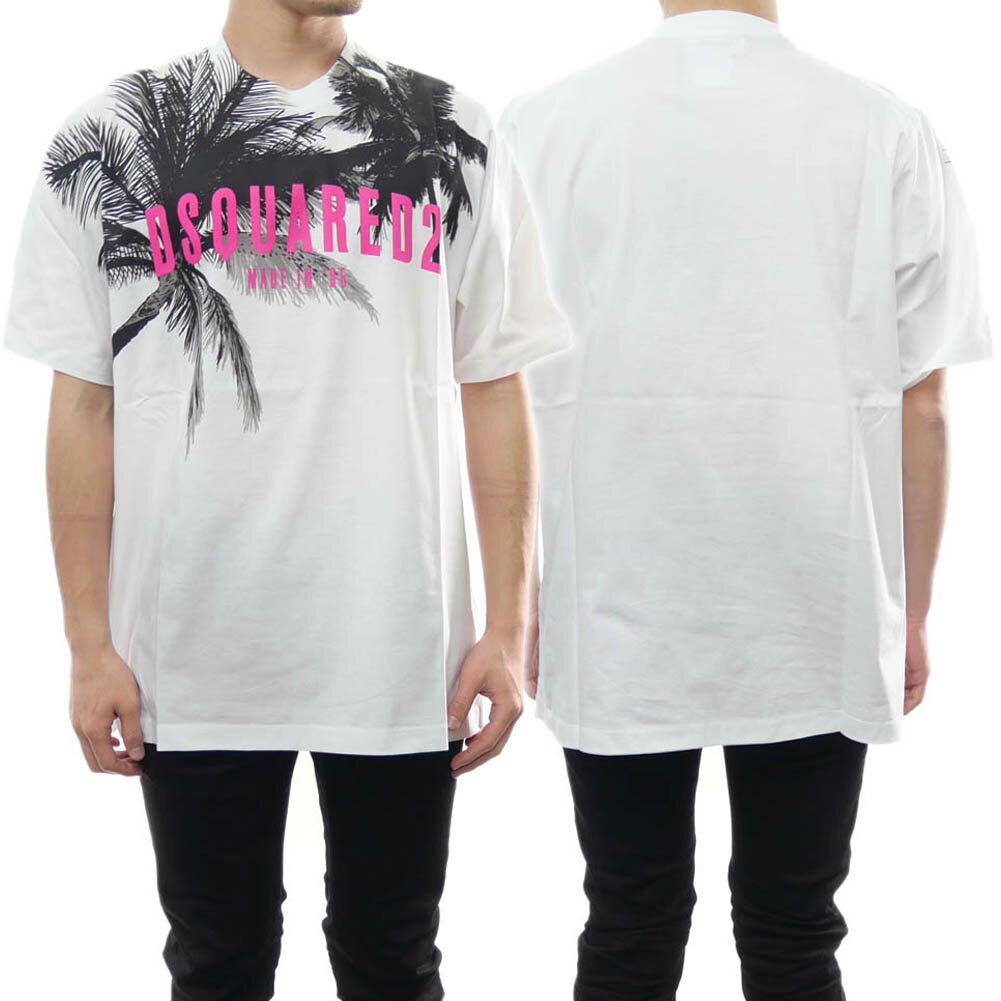 【50%OFFセール】DSQUARED2 ディースクエアード メンズ プリント Tシャツ パームツリー 半袖カットソー クルーネック s74gd1098 ホワイト 国内正規品