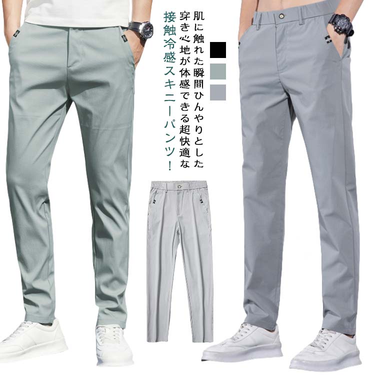 パンツ 吸水 涼感 メンズ 夏 秋 ビジネス ロングパンツ 長ズボン 無地 ストレッチ 薄手 涼しい 美脚 イージーパンツ 冷感パンツ シンプル 春 パンツ ひんやり 夏物 クール感 アイスシルク スリム ルームウェア オフィス 通勤 普段着 おしゃれ