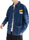 メンズ デニムジャケット 春秋 M-4XL 大きいサイズ ストレッチ ゆったり ジャン ジージャン 防風 防寒 通勤 通学 お出かけ 合わせやすい カッコイイ ファッション 英字柄 ブラック/ブルー