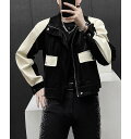 メンズ 秋 ハイエンド カラー ブロック PUレザージャケット ファッション カジュアル 対照的な色 レザージャケット ショート ショルダーパッド ジャケット