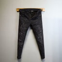 ・サイズ展開: 27.28.29.30.31.32.33.34.36.38・主な素材: デニム・ウエストタイプ: ミッドローライズ・カラー展開: ブラック・前閉じ: ジップフライ・伸縮性: 微ストレッチ・スタイル: ・スタイル: カジュアル・厚み: 標準・デザイン: ・加工: ウォッシュ加工.ユーズド加工.シワ加工.ヒゲ加工.加工.ブリーチ加工.ダメージ加工.ペンキ加工.スクラッチ加工・対象: ・パンツ丈: アンクル丈・シルエット: スキニーフィット