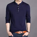 Tシャツ メンズ 男性用 長袖 カットソー コットン混紡 無地 スタンドカラー プルオーバー トップス 春夏 薄手 ビジネス カジュアル 白 グレー 黒 赤 青