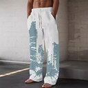 パンツ メンズ 大きいサイズ 夏用 薄手 ハイウエスト ワイドレッグ ストレート 3Dプリント ポリエステル カジュアル ビーチ スポーツ 部屋着