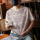 メンズ ファッション 服 男性用 オシャレ シンプル 大人 かっこいい 大きいサイズ ストリート 紳士服 スタイル カジュアル 幾何学 プリント 半袖 T シャツ 夏 レトロ ラウンドネック 半袖 トップス