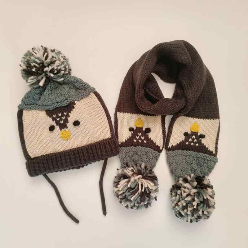 ニット帽 子供 キッズ 男の子 女の子 カートゥーン ペンギン柄 マフラー 2点セット 秋冬 防寒 1歳 2歳 3歳 4歳 5歳 6歳 かわいいstring