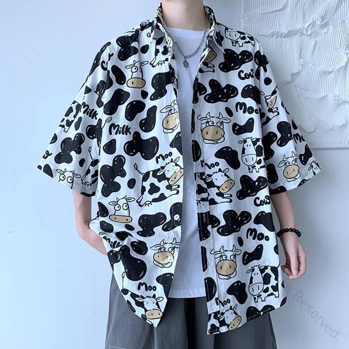 カジュアルシャツ メンズ 牛柄 半袖 開襟シャツ トップス 夏 オシャレ カジュアル 通学 メンズファッション 男の子 男性 シンプル 20代 30代 40代 人気ファッションアイテム