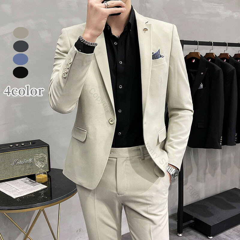 メンズスーツ 1つボタンスーツ タキシードスーツ 2点セット 二次会 成人式 卒業式 就職活 春夏秋冬対応 ビジネスフォーマル 上下セット 冠婚葬祭用 4色展開 披露宴 カッコイイ キレイめ 人気新作