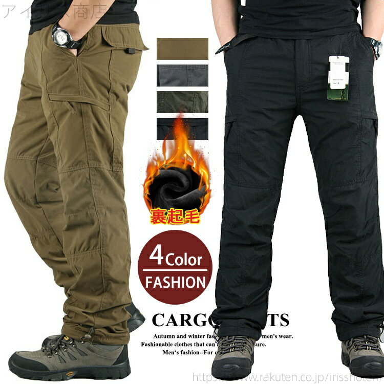 【送料無料】カーゴパンツ メンズ 裏ボアパンツ 防寒 冬 作業ズボン ミリタリー ワークパンツ 6ポケット 裏起毛 あったか ボトムス