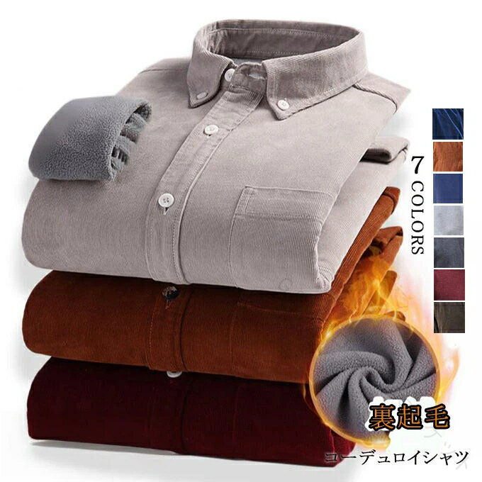 コーデュロイシャツ メンズ 長袖 裏起毛シャツ 裏ボア厚手 暖かい 無地 シンプル カジュアル ビジネス カジュアルシャツ ワークシャツ ネルシャツ 通学 通勤 秋冬 トップス メンズファッション しっかり保温で防寒対策も抜群の秋冬用カジュアルワークシャツ