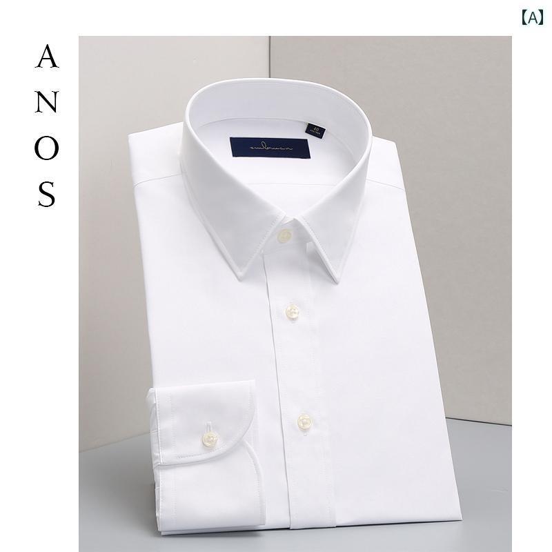 Yシャツ 長袖 メンズ ANOS ホワイト シャツ メンズ 長袖 ビジネス カジュアルノー アイロン スーツ スリム しわ 防止 春夏 仕事用 プロ フォーマルウェア