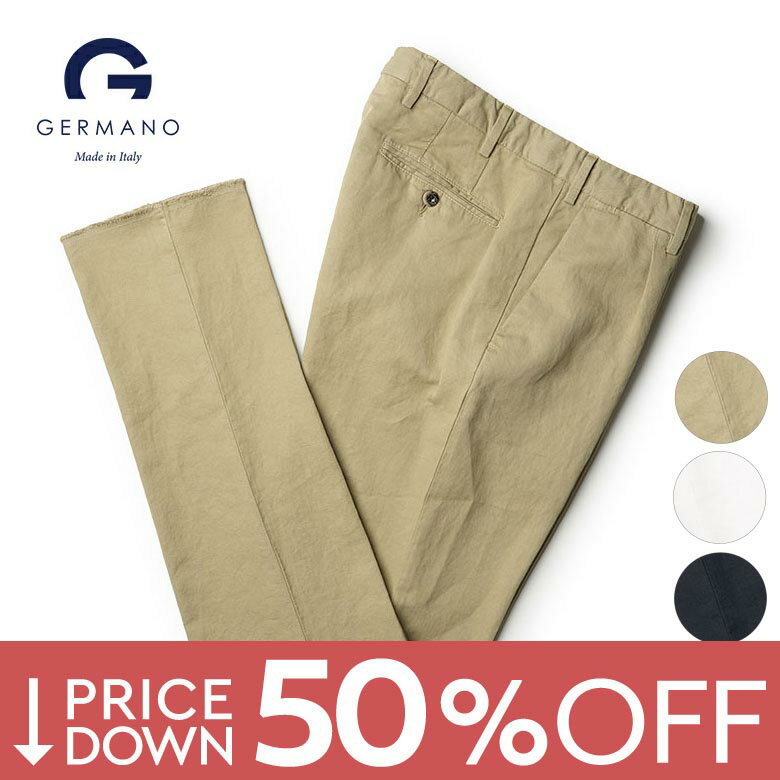 【50%OFF!】【裾直し100円】ジェルマーノ パンツ コットン リネン リヨセル ガーメントダイ 製品染め ワンプリーツ イタリア製 GERMANO 521G メンズ【返品不可】