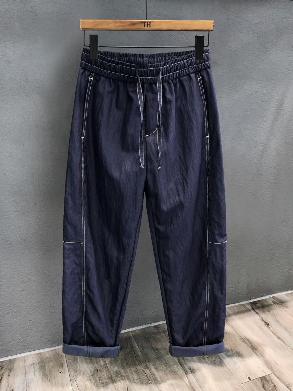 メンズ ファッション 服 男性用 オシャレ シンプル 大人 かっこいい ストリート サテン ハイエンド デニム ブルー パンツ ズボン 履物 夏 薄手 ストレート ズボン