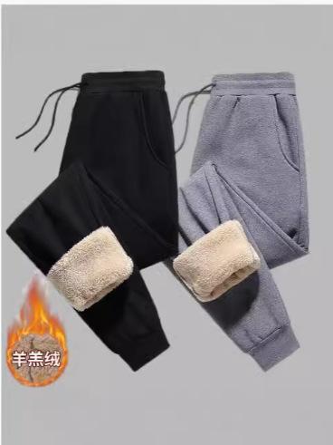 パンツ 男性用 羊羔绒 裏起毛 スウェットパンツ ストレート 運動着 リラックスパンツ 黒 グレー