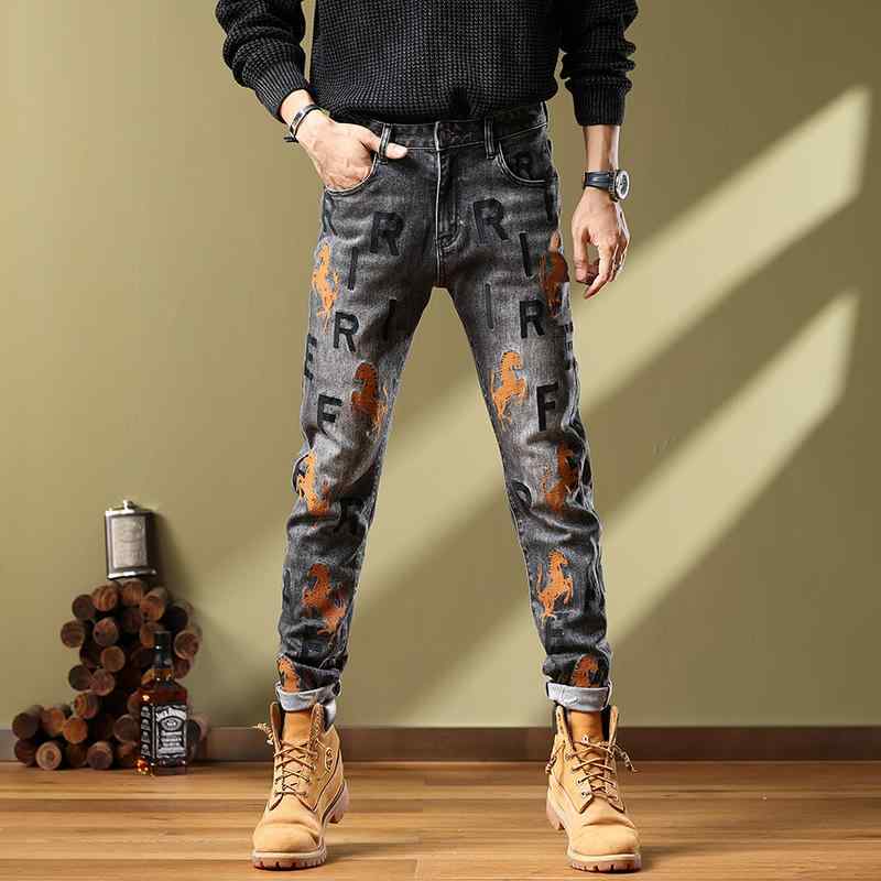 パンツ デニムパンツ ジーパン アメリカ メンズジーンズ 刺繍入り スリム フィート 春秋 ストレッチ カジュアル メンズ ロング