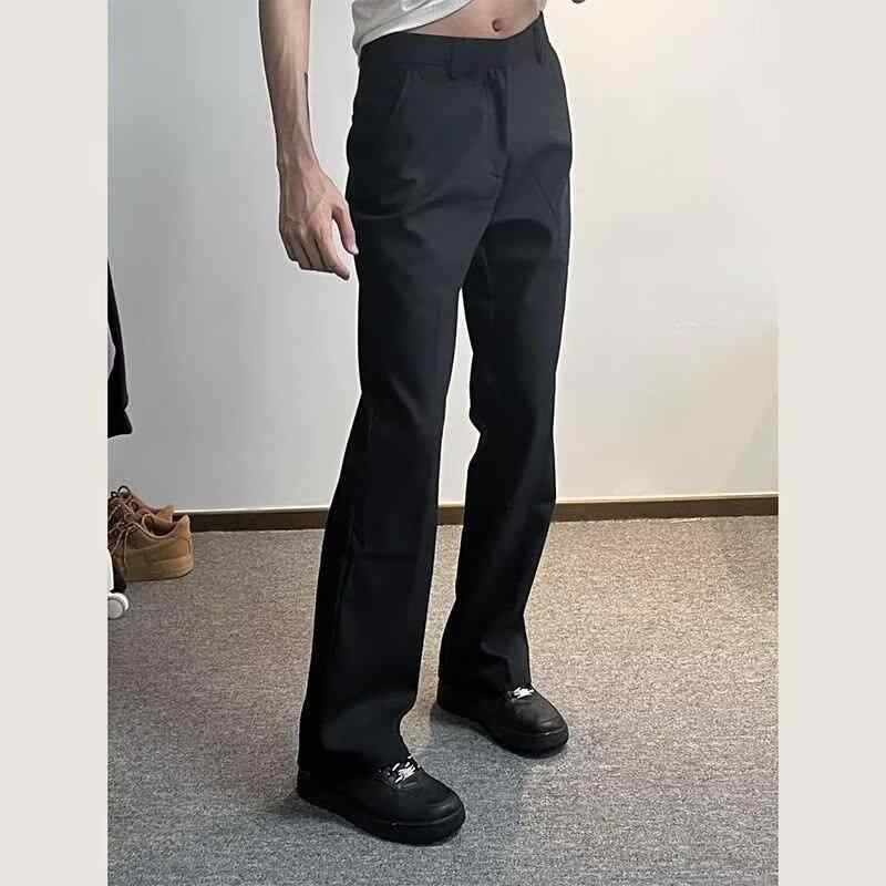 パンツ メンズ 男性用 黒 ストレート 微フレア ロングパンツ カジュアルパンツ 無地 伸縮性 中厚 春秋 普段使い 部屋着 ブラック