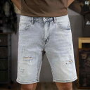 メンズ 夏 パンツ デニム ハーフ ひざ丈 ハイエンド リップドライ ブルー ショート ストレート フィット ウォッシュ レトロ 弾性 スリムフィット ミドル丈