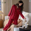 パジャマ セット スウェット 春秋 レディース Xuanliang 赤い パジャマ 綿 長袖 おしゃれな ストライプ 干支の 結婚式 大きいサイズ ホーム 服 スーツ