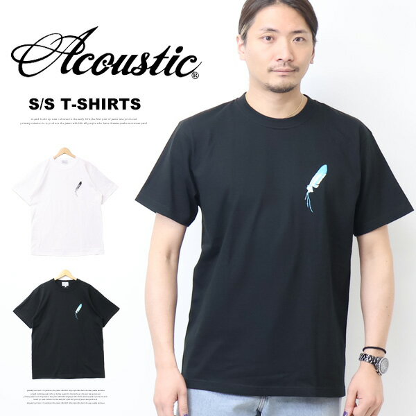 ACOUSTIC アコースティック プリント 半袖Tシャツ フェザー 半T メンズ AC25204