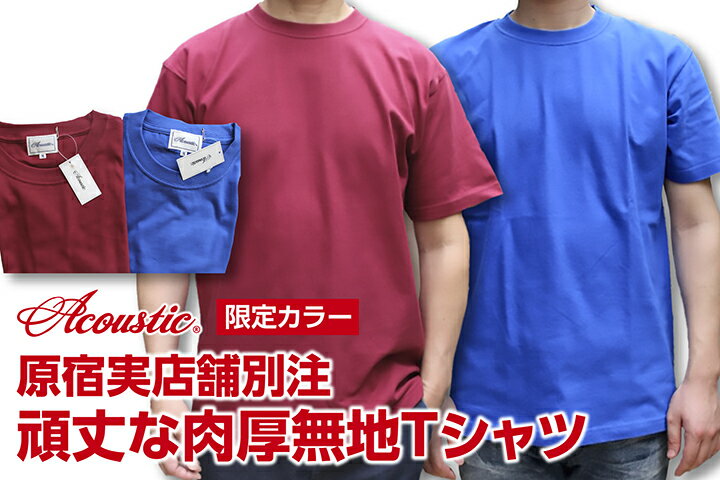 ACOUSTIC アコースティックHARAJUKU LIMITED SOLID CREW TEE原宿実店舗別注 頑丈な無地Tシャツ【絶対に首の伸びない丈夫な無地なTシャツ 限定カラー】 肉厚生地 丈夫 シンプル メンズTシャツ 特大サイズ(XXL)あり即日出荷対応