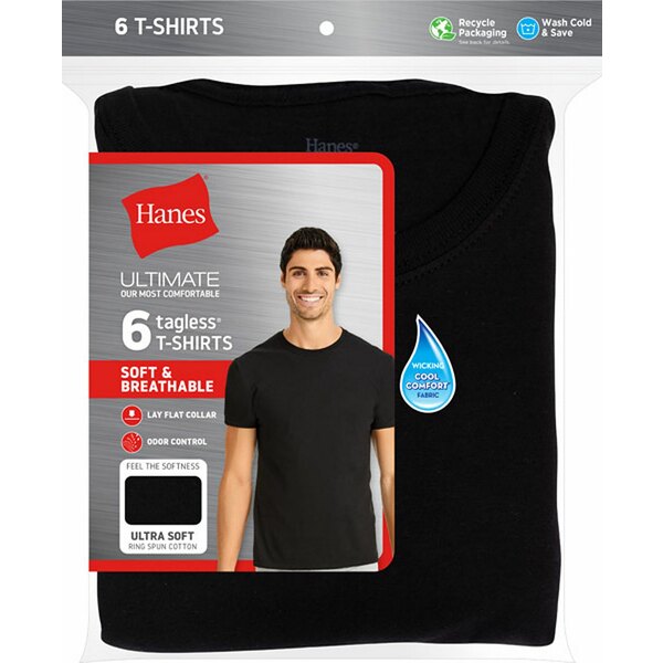 ヘインズ メンズ シャツ トップス Men's Ultimate 6pk. Crewneck Undershirts Black/ Grey Assorted