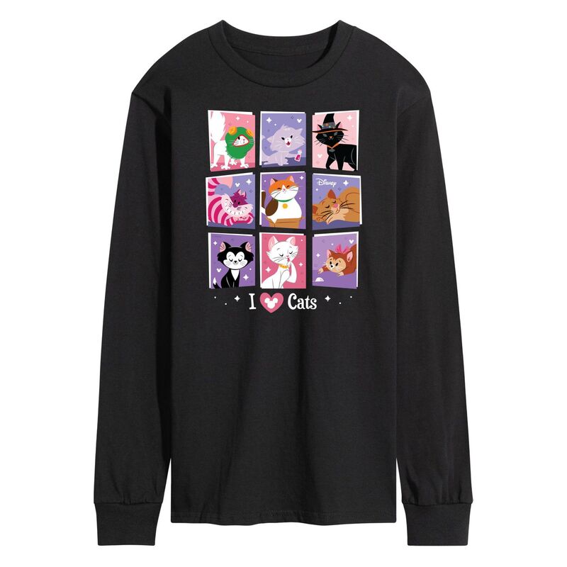 【送料無料】 ディズニー メンズ Tシャツ トップス Disney's Men's Grid Of Assorted Cats Long Sleeve Graphic Tee Black