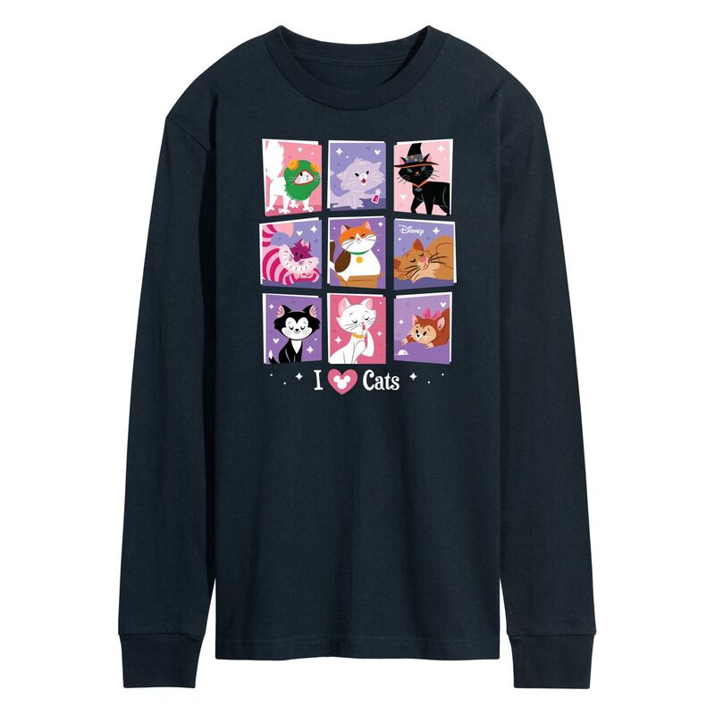 【送料無料】 ディズニー メンズ Tシャツ トップス Disney's Men's Grid Of Assorted Cats Long Sleeve Graphic Tee Navy