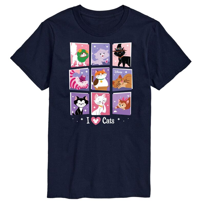 【送料無料】 ディズニー メンズ Tシャツ トップス Disney's Men's Grid Of Assorted Cats Graphic Tee Navy