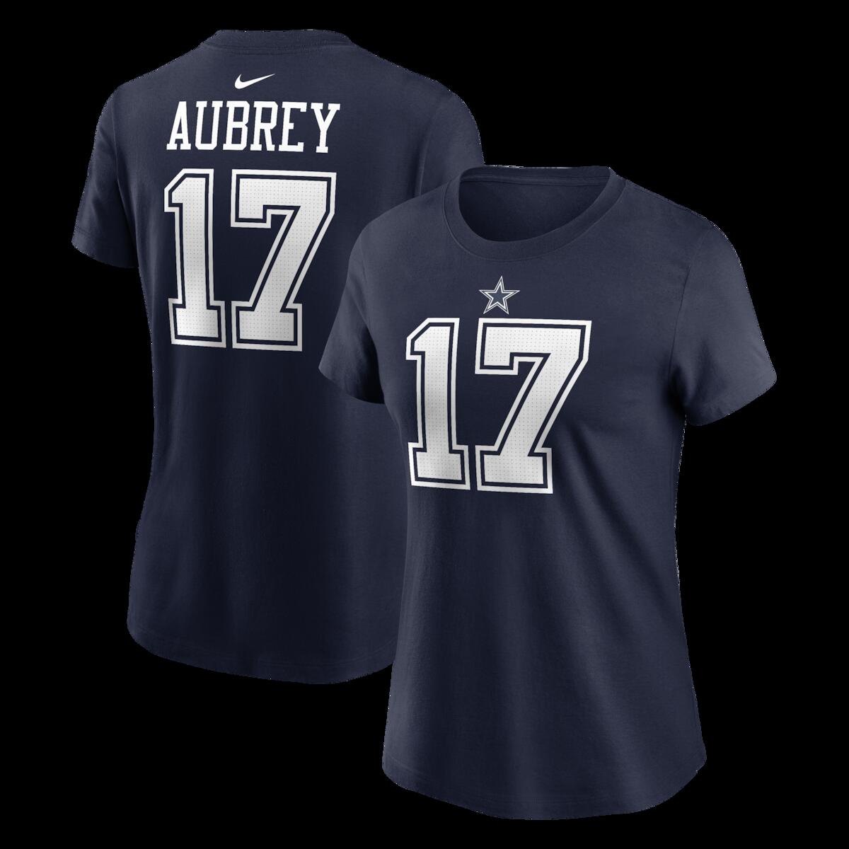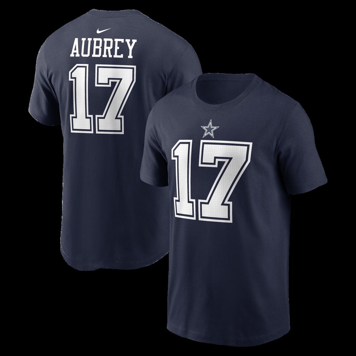 Show your favorite Dallas Cowboys player support with this Brandon Aubrey Name & Number T-Shirt by Nike. It features jersey-like details displayed on the back for a sporty look. Cotton fabric makes this Brandon Aubrey tee comfortable to wear every day.Team logo and player number printed on the frontOfficially licensedMesh details on numbersSizing Tip: Fans say this item runs small. If you are in between sizes, consider sizing up.Short sleeveMaterial: 100% CottonJersey-like design displayed on the backStandard Fit: Easy and traditionalBrand: NikeCrew neckMachine wash, tumble dry lowImportedLightweight feel (155gsm)