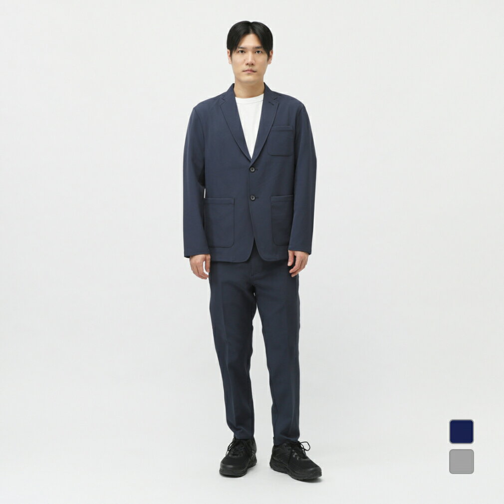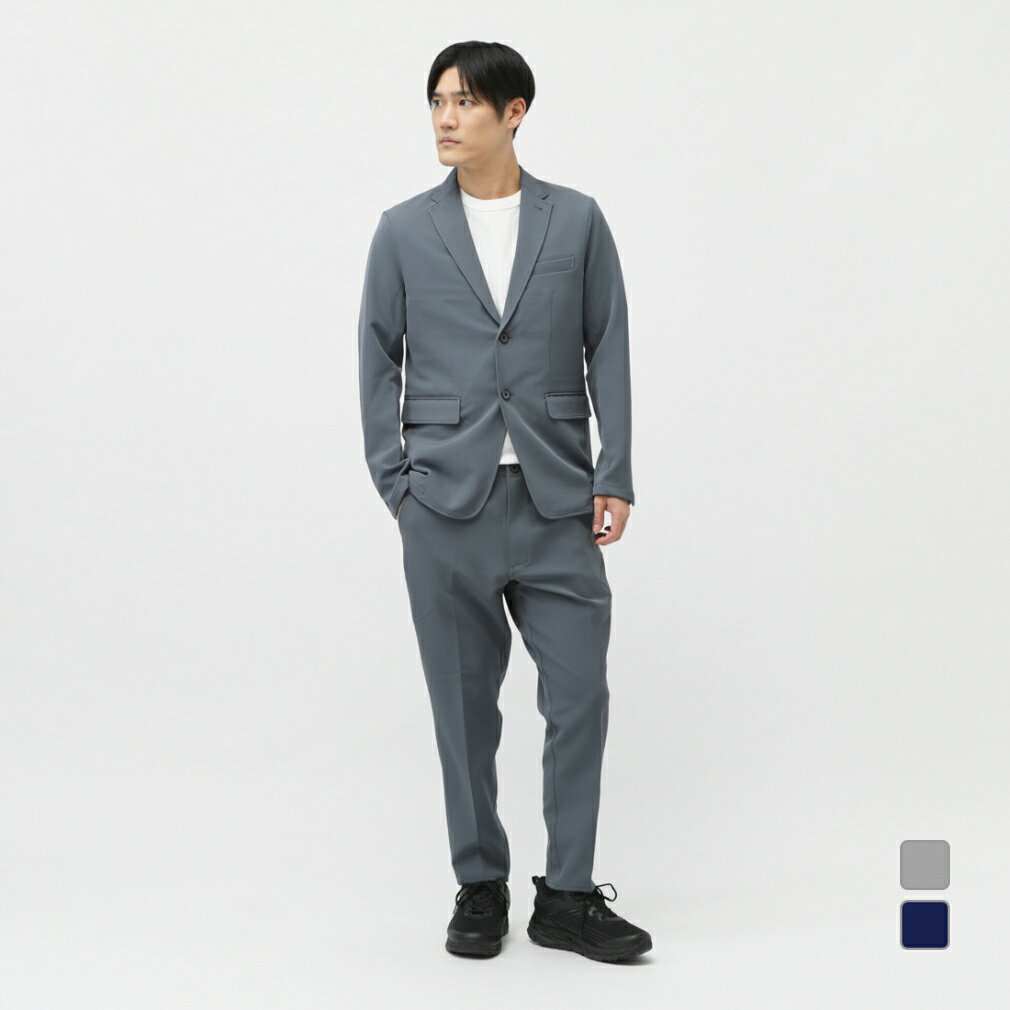 【トップス】 FIT をテーマに開発された働く大人のデイリーウエア。すっきりとしたシャープなシルエットのシティージャケットは、ジャージのような柔らかさと滑らかさ、全方向に伸びる高い伸縮性、さらりとした感触のサークルストレッチウーブン素材を採用。動きやすくストレスフリーな着心地を提供します。休日のおでかけでも、平日のビジネスシーンでも着用できるシンプルなデザインと使いやすいカラーで展開します。 【ボトムス】 FIT をテーマに開発された働く大人のデイリーウエア。細すぎず太すぎない直線的なシルエット、流行にとらわれないストレートフィットのパンツを、ジャージのような柔らかさと滑らかさ、全方向に伸びる高い伸縮性、さらりとした感触を提供するサークルストレッチウーブン素材で仕上げました。休日のおでかけでも、平日のビジネスシーンでも着用できるシンプルなデザインと使いやすいカラーで展開します。 ■カラー(トップス/ボトムスメーカー表記):ダークブルー(ECL)グレー(GT)■トップス素材:ポリエステル86% ポリウレタン14%■ボトムス素材:ポリエステル86% ポリウレタン14%■生産国:中国 カンボジア9512641115、9521641215■標準対応サイズS:身長/162~170cmM:身長/167~175cmL:身長/172~180cmXL(LL・O):身長/177~185cm■商品実寸サイズサイズS メンズM メンズL メンズXLメンズ着丈70cm71cm73cm75cm股上29cm29cm29cm29cm股下67cm68cm70cm71cm肩幅42cm43cm45cm46cm袖丈60cm62cm64cm65cm裾幅18cm18cm18cm19cm身幅49cm50cm52cm54cmウエスト70cm74cm80cm84cmアルペン alpen スポーツデポ SPORTSDEPO 上下セット スーツ 洗えるスーツ 動きやすい 上下SET スポーツデポ限定 アルペン限定 エクスクルーシブ exclusive