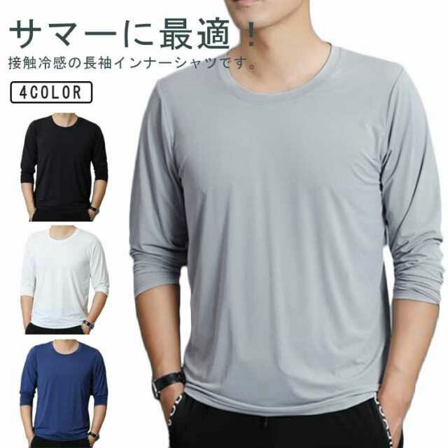 Tシャツ インナーシャツ 接触冷感 メンズ 長袖 涼しい トップス アイスシルク 薄手 ストレッチ 吸水速乾 丸首 作業服 伸縮性 トレーニングウェア ゴルフウェア 野球 大きいサイズ バイク 釣り キャンプ スポーツ S-5XL 送料無料