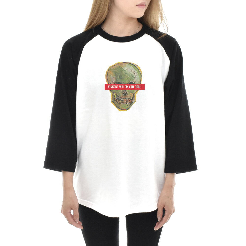 【7分袖 アートTシャツ】ゴッホ Tシャツ 骸骨 フィンセント・ファン・ゴッホ ライフ イズ アート 7分袖 ラグラン ベースボール メンズ レディース 大きいサイズ ビックサイズ おしゃれ 絵画 名画 ティーシャツ S M L XL ホワイト 白 ブランド【S47_01】