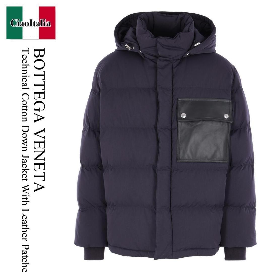 【数量限定・在庫限り・早い者勝ち!】 ボッテガ・ヴェネタ / Bottega Veneta Technical Cotton Down Jacket With Leather Pat / 837046 V5O60 / 837046 V5O60 4246 / 837046V5O60 / 837046V5O604246 / ダウンジャケット