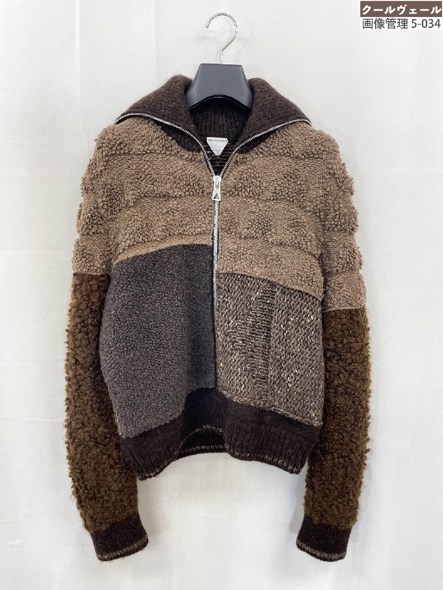 2022AW 極美品【ボッテガヴェネタ BOTTEGA VENETA】720809 V2D40 カシミアブレンド異素材切替 ニットブルゾン(メンズ?)S 茶 伊製◇17HT2967【中古】