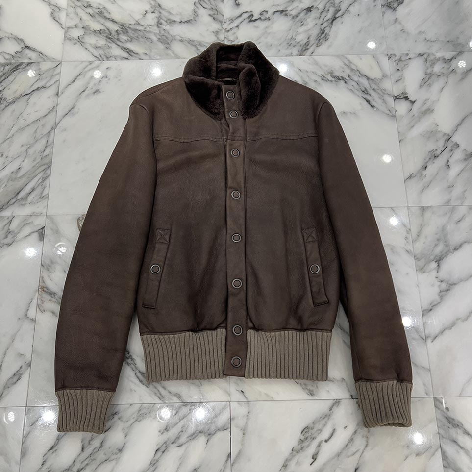 BOTTEGA VENETA 2021AW Sheep Skin Leather Riders Boa Jacket Size 48 ボッテガヴェネタ シープスキン レザー ライダース ボアジャケット 革ジャン ソフトレザー 裏地ボア シルバー金具 ブラウン×ベージュ サイズ48【251031】【中古-A】