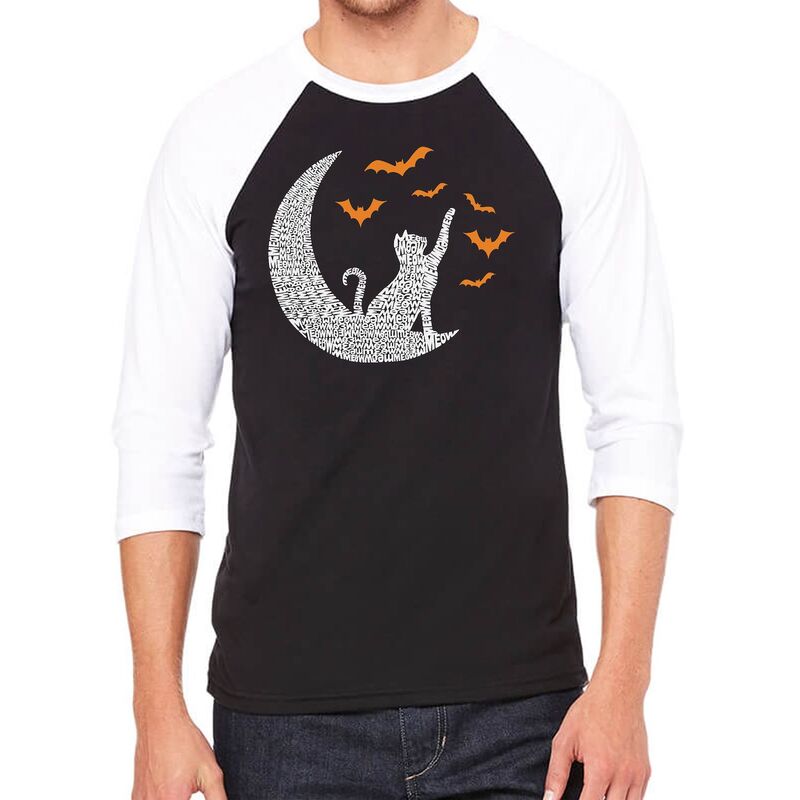 【送料無料】 エルエーポップアート メンズ Tシャツ トップス Lunar Bats - Men's Raglan Baseball Word Art T-shirt Black White