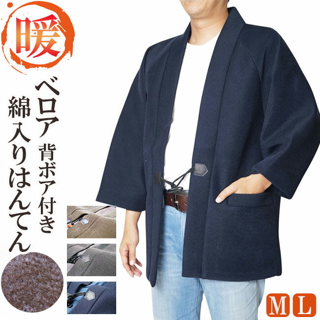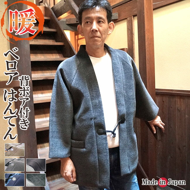 はんてん メンズ 日本製 半纏 半天 どてら 丹前 ベロア 背ボア付き M/L/LL 日本製 男性用 暖かい おしゃれ 半天 半纏 袢纏 男性用 どてら ちゃんちゃんこ 丹前 おしゃれ 冬 あたたかい 部屋着 手づくり 敬老の日 プレゼント ギフト