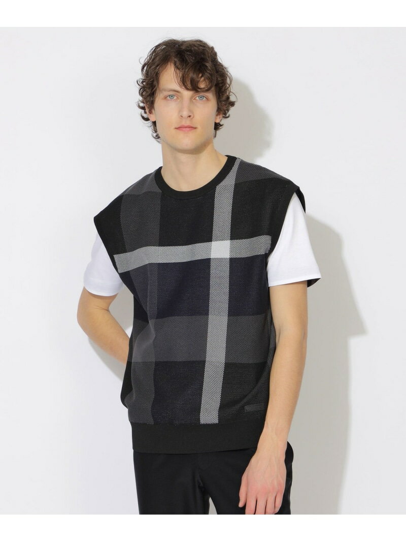 【SALE/25%OFF】【WEB・一部店舗限定】クレストブリッジチェックインレーベスト BLACK LABEL CRESTBRIDGE ブルーレーベル / ブラックレーベル・クレストブリッジ トップス ニット ベージュ ネイビー【RBA_E】【送料無料】[Rakuten Fashion]