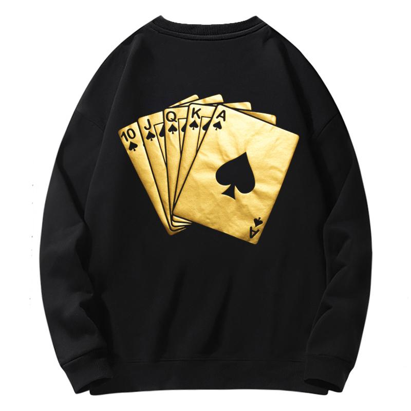 トップス メンズ トレーナー ストリート かっこいい アメリカン レトロ ラウンドネック ブロンズ ポーカー セーター 個性的 学生 紳士服