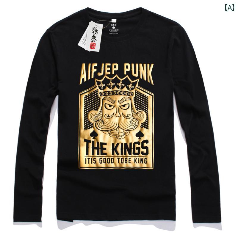 メンズ カジュアル ロング T シャツ トップス パンク ブロンズ 長袖 レトロ ファッション 綿 ゆったり 大きいサイズ