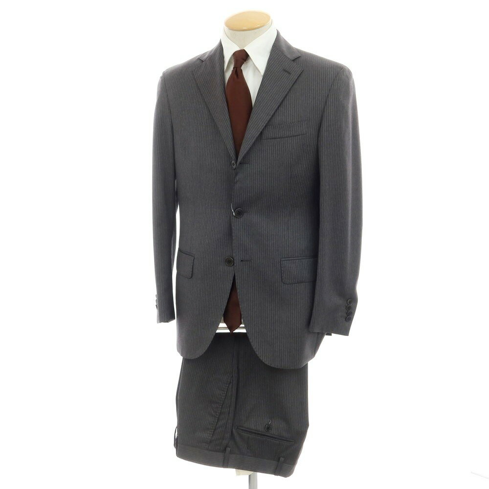 【中古】カンタレリ Cantarelli ウール ピンストライプ 3つボタンスーツ グレーxホワイト【サイズ44 7R】【GRY】【A/W】【状態ランクD】【メンズ】【758985】