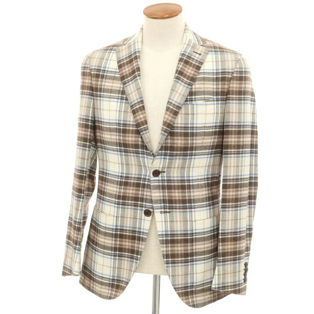 【中古】カンタレリ Cantarelli コットン チェック テーラードジャケット トープxホワイト【サイズ46】【BRW】【A/W】【状態ランクB】【メンズ】【758774】