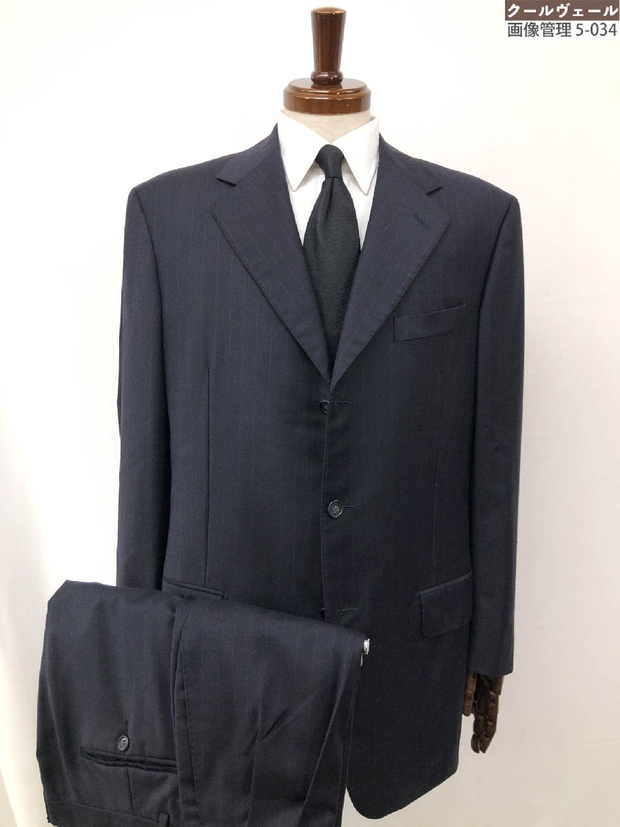 【カンタレリ Cantarelli】ウール シングル3ボタン スーツ (メンズ) size52/6R ネイビー系 濃紺 ストライプ柄 ◯32RMS1154◯ 【中古】