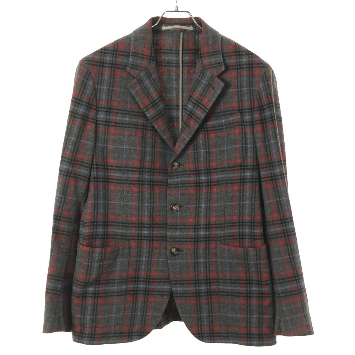 Cantarelli カンタレリ KNIT JACKET タータンチェック テーラードジャケット グレー×マルチカラー 50 【中古】 IT6D9O2OU0HW