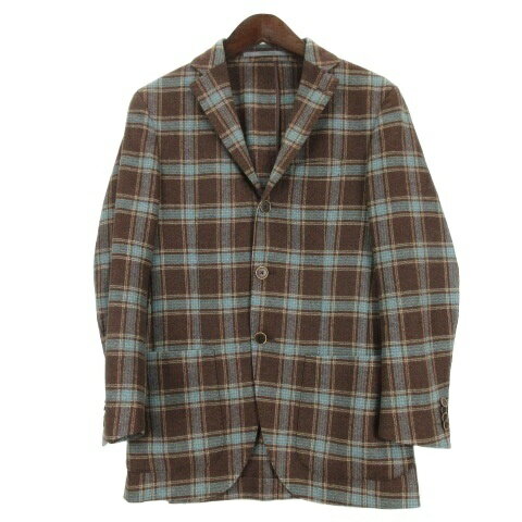 【中古】カンタレリ Cantarelli チェック テーラード ジャケット 42 ブラウン系 251007E メンズ 【ベクトル 古着】 251007