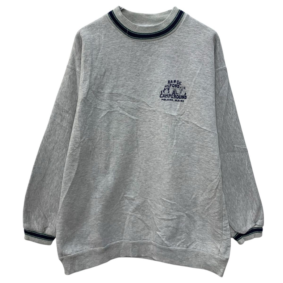 【中古】【古着】 CASTAWAYS ロゴスウェット トレーナー L〜 ライトグレー ネイビー プルオーバー ワンポイント スウェット アニマル 春秋物 a802-5090