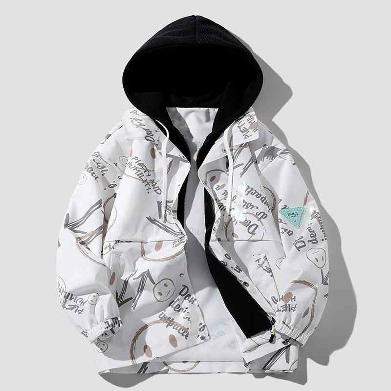 ・カテゴリ: ジャケット・スタイル: ユニセックス・性別: 男性・対象: 若年層・主な素材: ポリエステル100%・裏地素材: ポリエステル100%・ネックライン: スタンドカラー・袖丈: 長袖・袖タイプ: レギュラー・着丈: レギュラー丈・フィット: レギュラーフィット・厚さ: 普通・フード: 付き・フロント: ジッパー・デザイン特徴: マルチポケット・ポケットスタイル: フラップポケット・裾デザイン: ストレート・着用方法: アウター・着用シーン: 日常使い・機能: 耐摩耗性・加工: ノーアイロン加工・カラー展開: ホワイト、ブラック・サイズ展開: M、L、XL、XXL、XXXL、XXXXL、5XL、6XL
